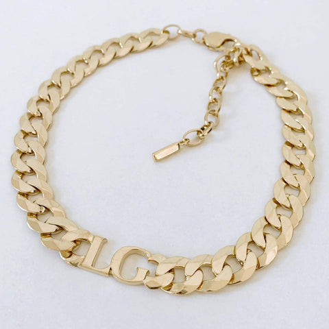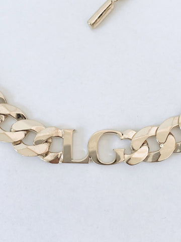 With an adjustable length: 36-45cm we can add initials of your choice on a 12mm wide curb chain.